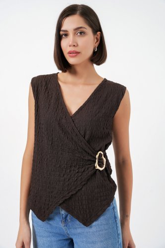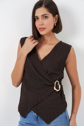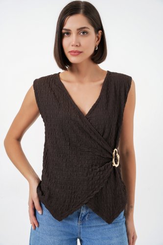 • Sıfır Kol Örme Bluz 988 Kahverengi